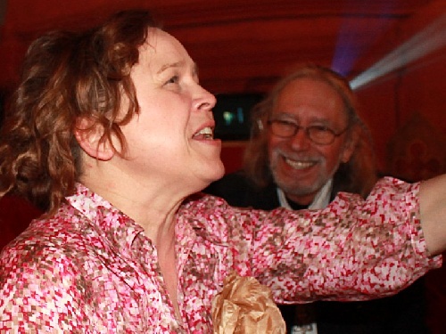 Plötzlich hat sich die Stimmung wieder gedreht. Birte und Rabbi Blumenfeld sind wieder bester Laune.