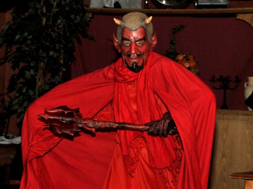 Plötzlich taucht der Teufel (Simona Mai) in der Abtei Santa Clara auf.
