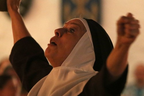 Jetzt beginnt Ihr Exorzismus : ''Satanische Macht, Sturmschar der Hölle, Ihr werdet ausgerissen und hinausgetrieben aus der Kirche Gottes !''