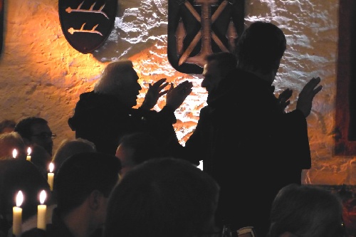 Ein Blitzeinschlag mit Stromausfall. Abt Magnus und Bankier Hinteregger geraten in einen Streit.