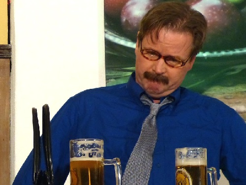 Der angetrunkene Waffenhändler Leopold Hinz (Martin Dudeck) kommt schlecht gelaunt in die Kneipe ''Zur alten Schmiede'' und pöbelt die Gäste an.