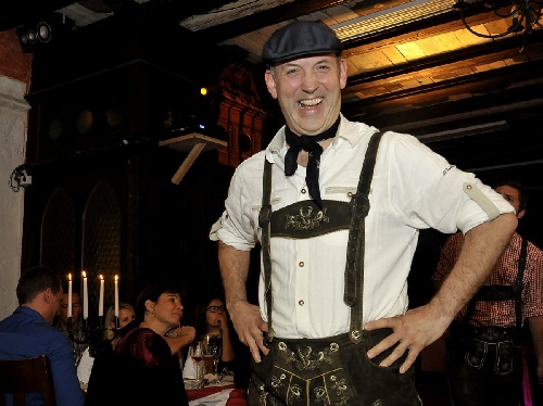 Wir befinden uns im Refektorium der Abtei. Quirin Anzengruber begrüßt die Bergbauern.