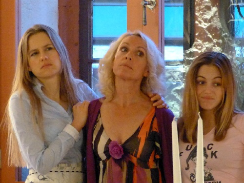 Frauke, Birte und Rebekka beobachten skeptisch das Geschehen aus sicherer Entfernung.