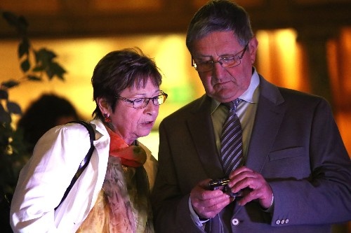 Die ersten Gäste kommen und prüfen ihre Kamera.