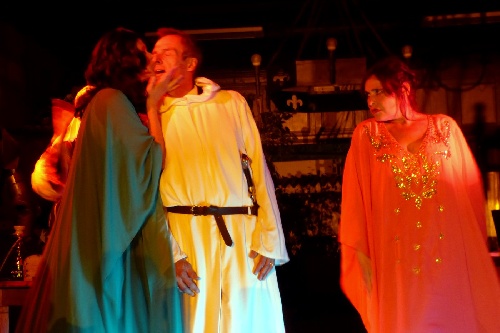 Plötzlich stösst ein Kreuzritter dazu, Bruder Theodor (Werner R. Gawlik). Fatima animiert Theodor, mit ihm ins Gemach zu gehen. Laila schaut eifersüchtig zu.