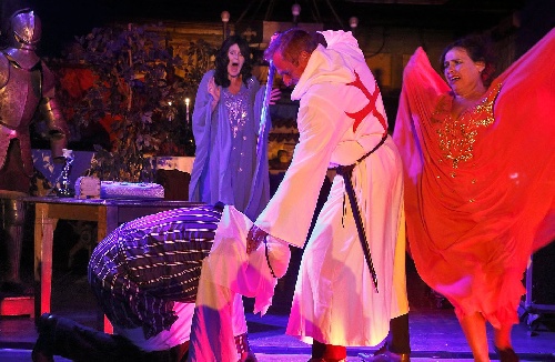 Theodor will Abdullah töten. Die Tänzerinnen Fatima (Bente Lay) und Laila (Johanna Schubert) sind verzweifelt.