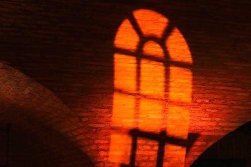 Die Abendsonne scheint durch die Kirchenfenster.