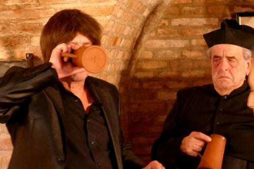 Vito Vitello raucht und trinkt. Don Carmelo beobachtet das Ganze sehr skeptisch.