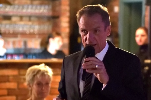 Produzent und Regisseur Werner R. Gawlik begrüßt die Gäste in der Alten Ölmühle.