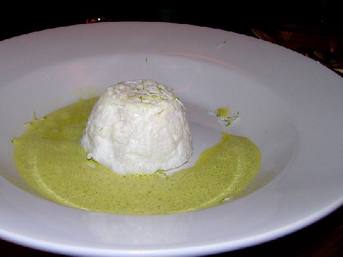 Die Vorspeise - Der Grabschmuck: Ei aus dem Förmchen auf grünem Trüffelschaum