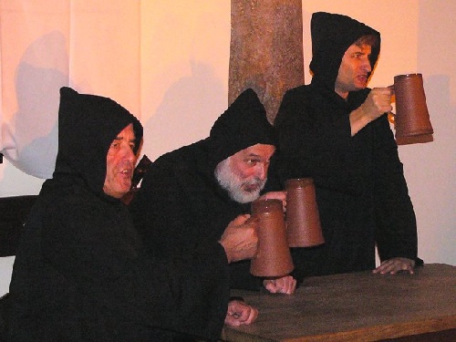 Die Brüder Paulus, Jakob und Franziskus beim fröhlichen Bier-Gelage in der Abtei Benifizius im Jahre 1517