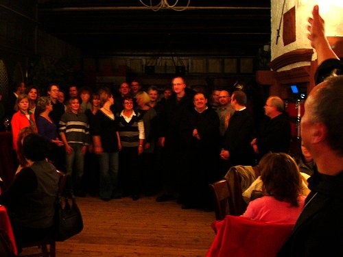 Abt Magnus stellt zum Schluss alle Mitspieler aus dem Publikum vor.