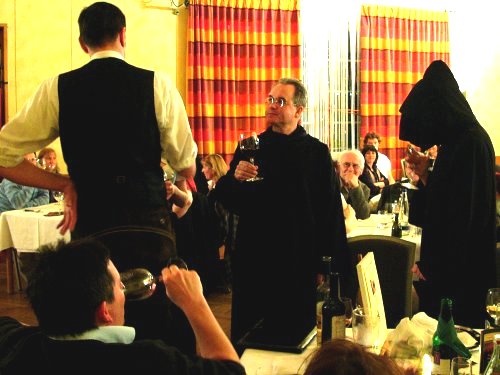 Der Cellerar, Pater Benedikt, ermahnt Hinteregger zur Contenance.