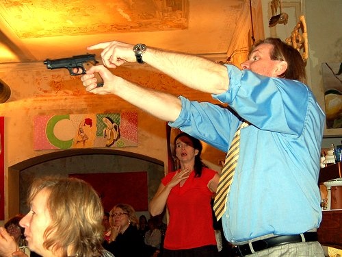 Und auf wen zielt Bürgermeister Paolo Rossi mit der Pistole?