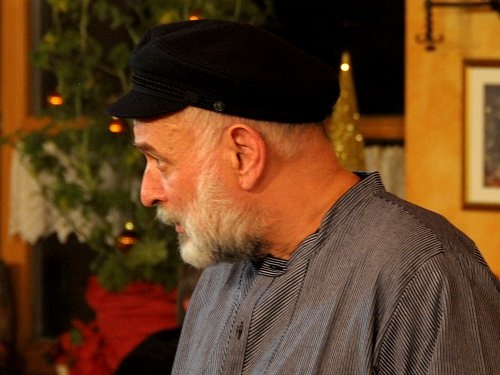 Bürgermeister und Fischer Borke Benke hält ein Zwiegespräch mit Frauke Feddersen.