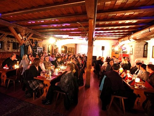 Die ''Süderstormer'' warten in Fraukes rustikalem Dorfkrug (Ritterschwemme in Kaltenberg) auf den Beginn des Sakraldinners.
