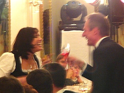 Bürgermeisterin Barbara Braun und Bankier Xaver Hinteregger amüsieren sich prächtig auf dem Bankett. Warum sind die beiden so gut gelaunt?