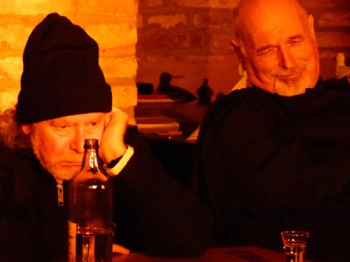 Pastor Roluf und Dorf-Schulte Ole sind in ein typisch ostfriesisches Gespräch vertieft.