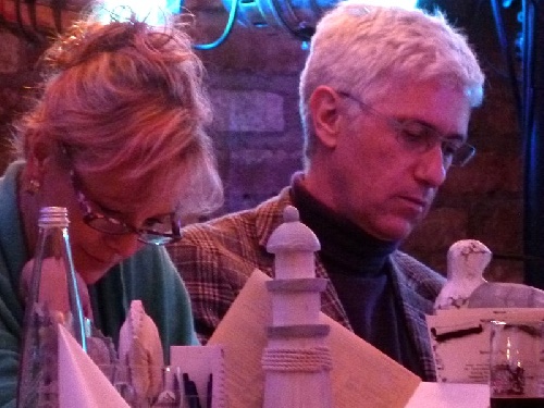 Der erste Gang wurde serviert. Die Gäste lesen die neuesten Nachrichten aus dem