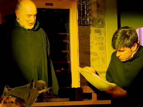 Bruder Jakob übergibt Don Giovanni ein geheimes Pergament.