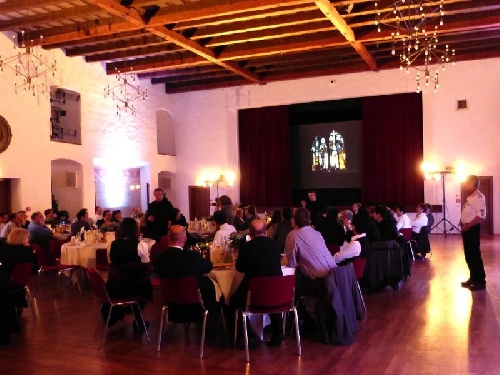 Cellerar father Benedikt and abbot Magnus welcome their guests.