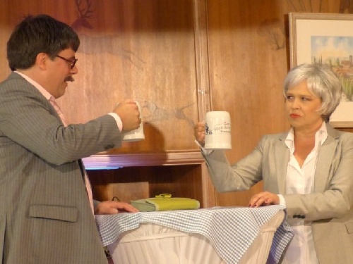 Mit der Zeit kommt man sich näher und prostet sich zu.