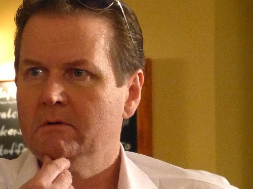 Georg (Jorg) von Laudenbach hat sich in seine 70er-Jahre Klamotten geschmissen. Er ist in der Midlife Crises und möchte Simone beeindrucken.