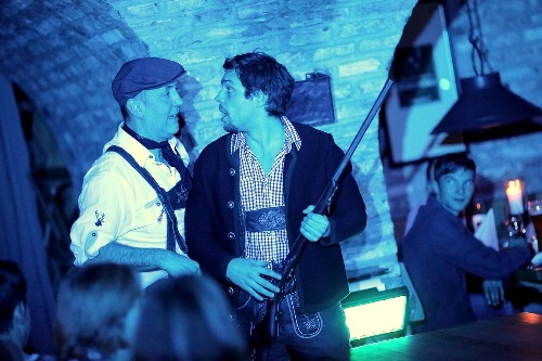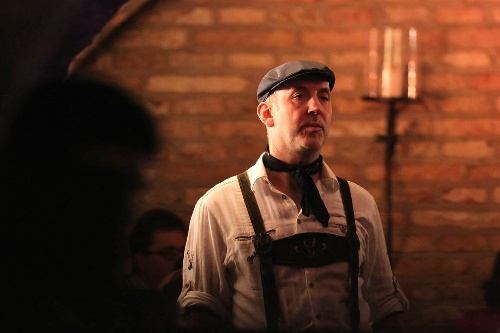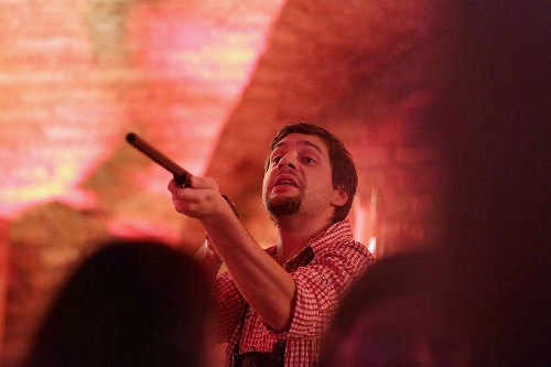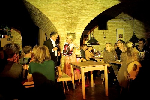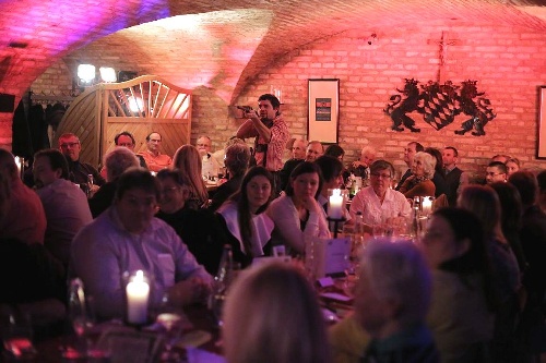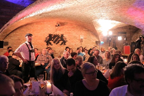 Der Autor und Produzent Werner R. Gawlik begrüßt die Gäste zur Premiere im Stephanskeller in Weihenstephan.
