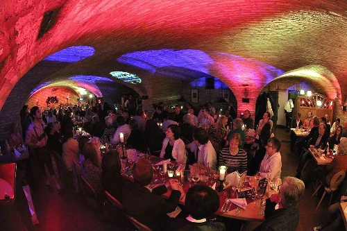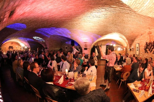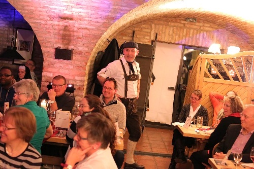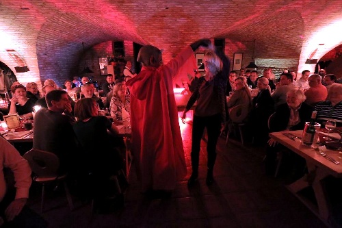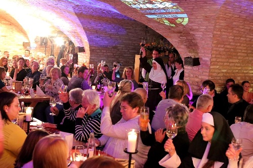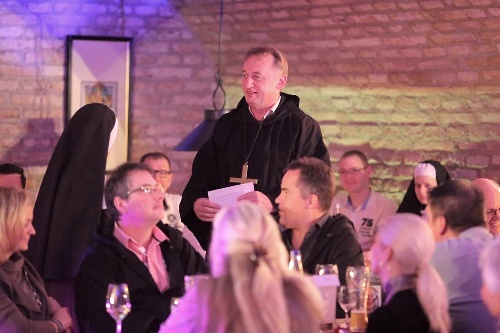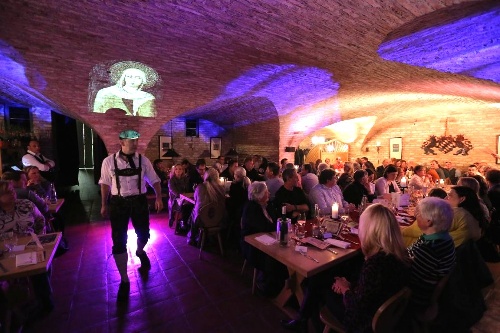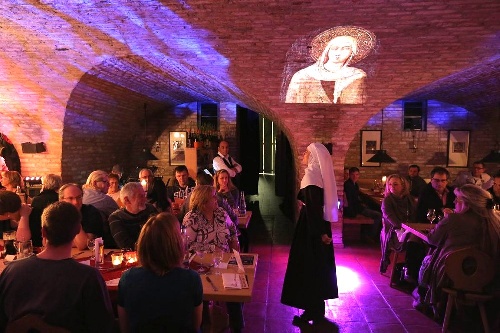 Das Sakraldinner mit Gospel-Musik beginnt. Quirin Anzengruber und Barthl Busch kommen ins Refektorium der Abtei.