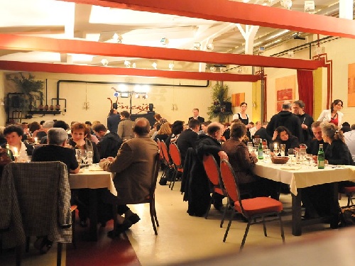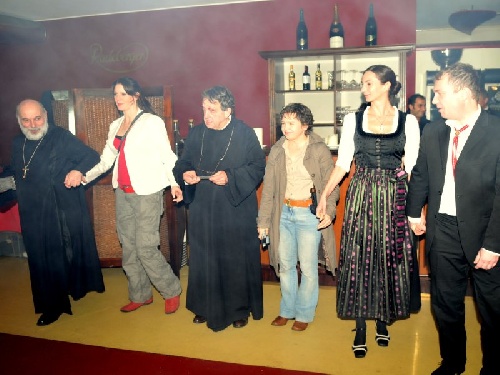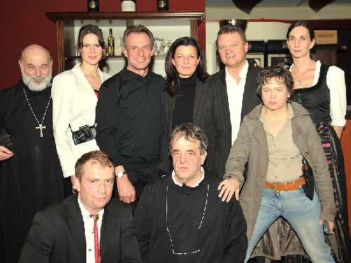 Die Schauspieler mit den beiden Produzenten und dem Wirt der Vineria in Nürnberg