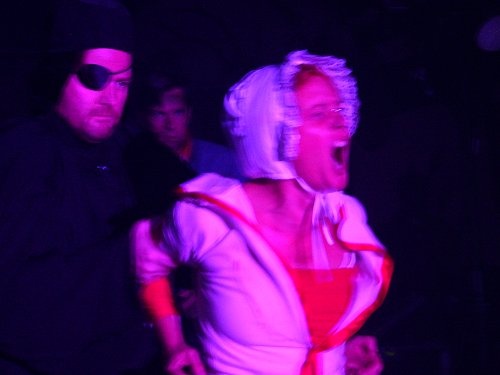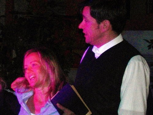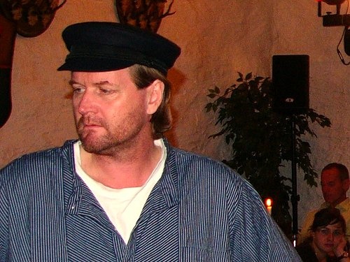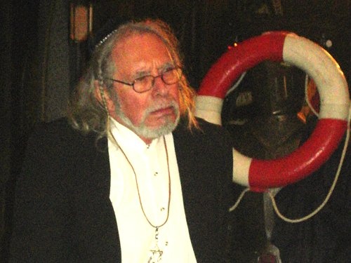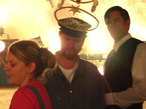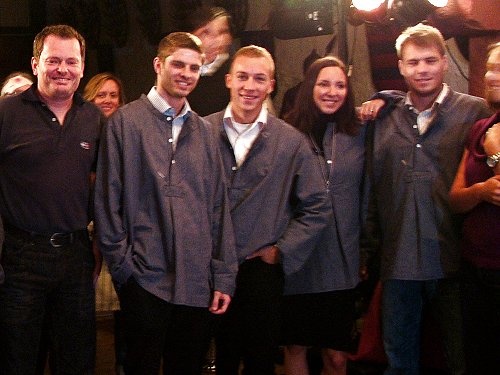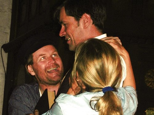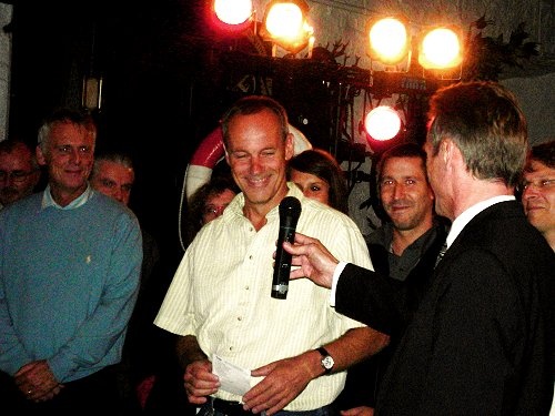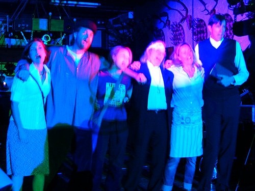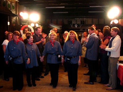 Die Mitspieler aus dem Publilum: Der Schuldirektor Wolle Hinrichs und die vier singenden Matrosen.