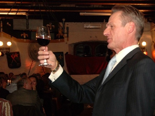 Bankier Xaver Hinteregger entspannt die Situation und bietet dem Cellerar von seinem Rotwein an. Es ist ein köstlicher Tropfen: Klosterhügler Mönchsblut!