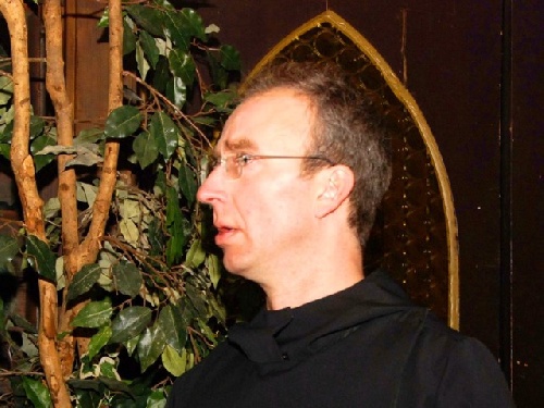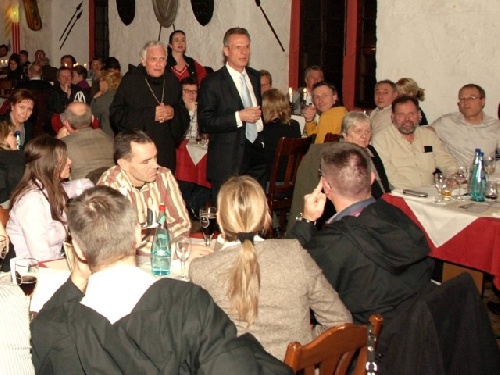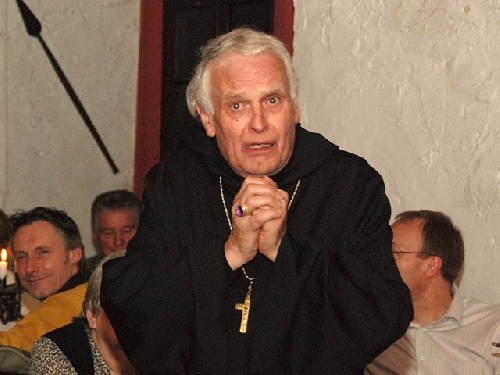 Abt Magnus begrüßt die weltliche Bevölkerung zum Sakraldinner in der Abtei Benifizius.