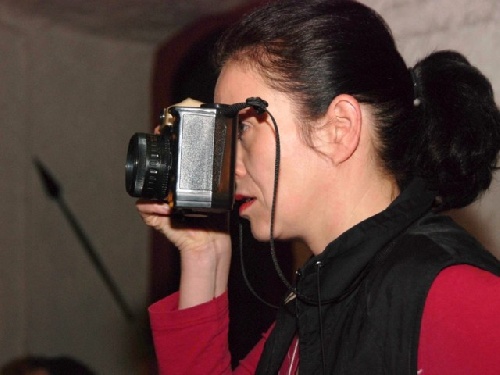 Journalistin Judith Jäger macht bereits Fotos für ihre Schlagzeile.