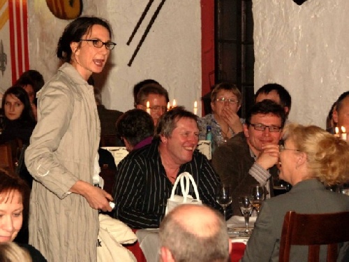 Judith Jäger macht sich über die Gäste lustig.