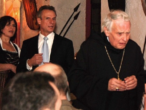 Abt Magnus begrüßt den Ehrengast aus Rom, Abtprimas Frederico di Medici (gespielt von einem Gast).