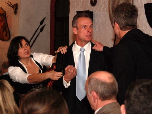 Außerdem sind zu Gast: die Bürgermeisterin Barbara Braun und der Bankier Xaver Hinteregger. Hinteregger scheint etwas gestresst.